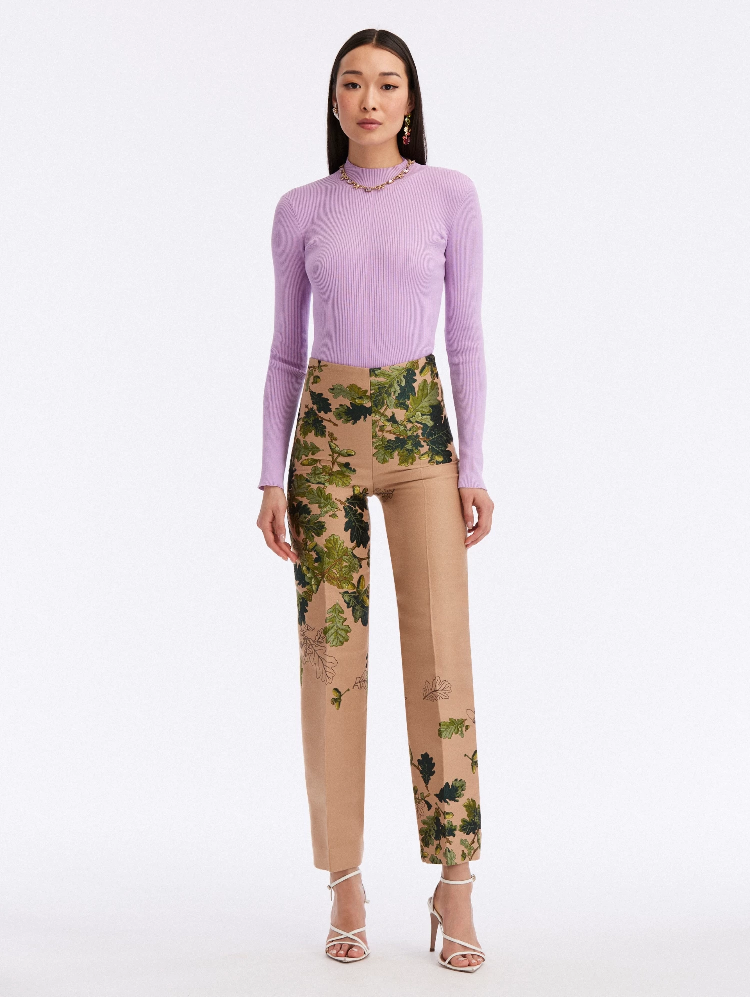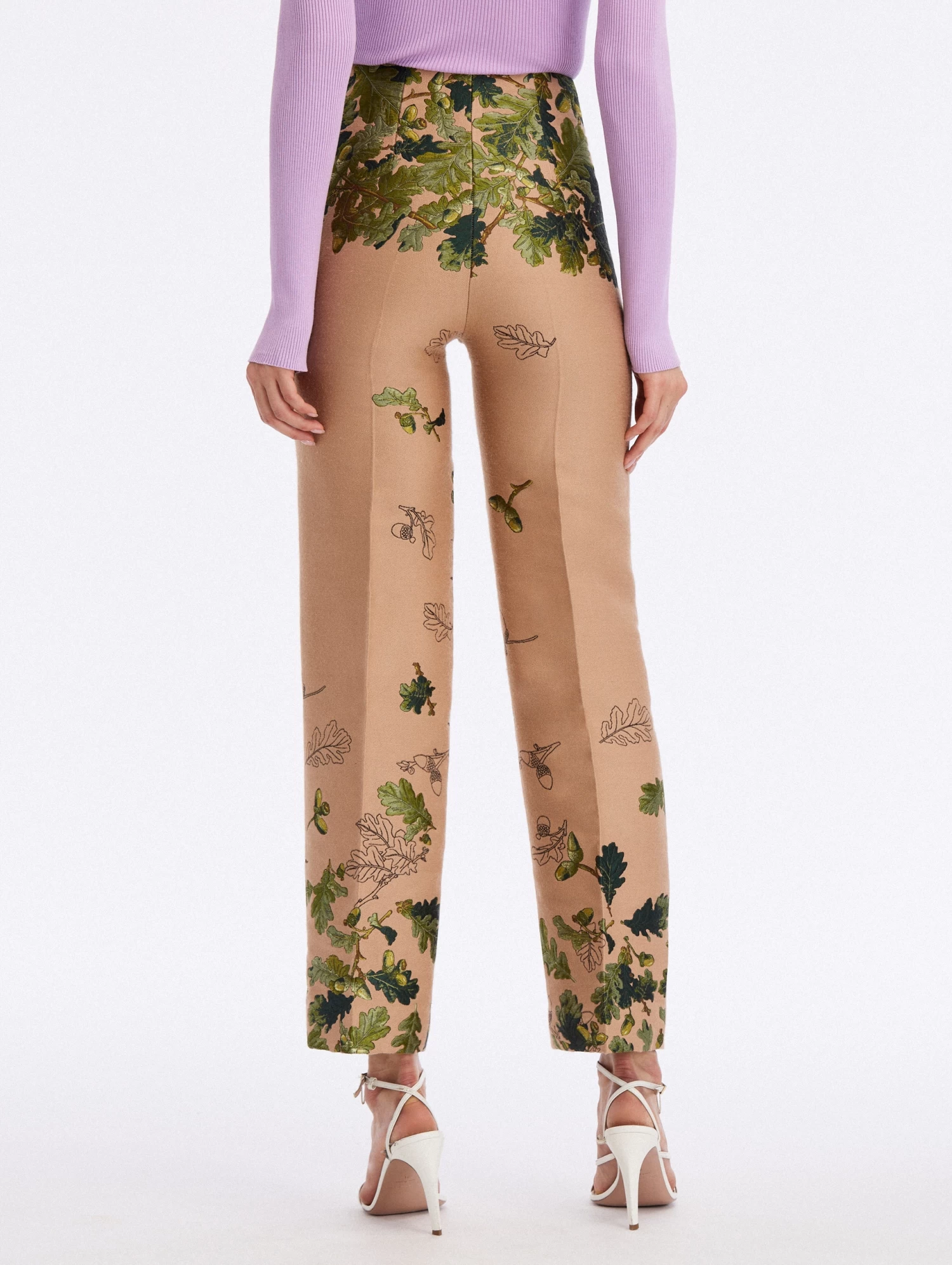 Inspired by the resplendence of Autumn, these jacquard pants boast a high-waisted silhouette in complement to an ankle length.