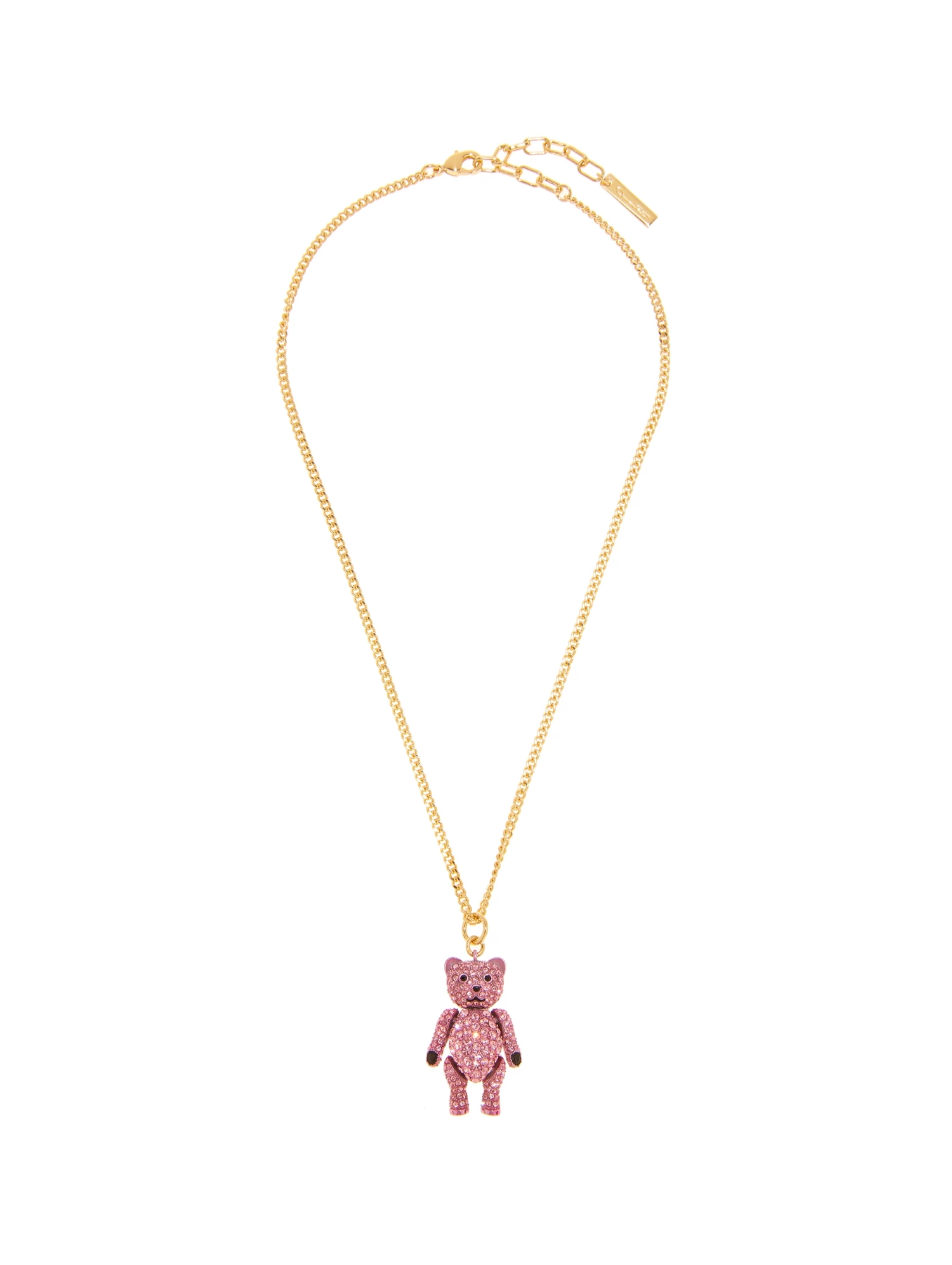 Baby Bear makes a return for Pre-Fall 2023. Set with all-over fuchsia glass crystals, this chain choker brings playful elegance to your jewelry edit.