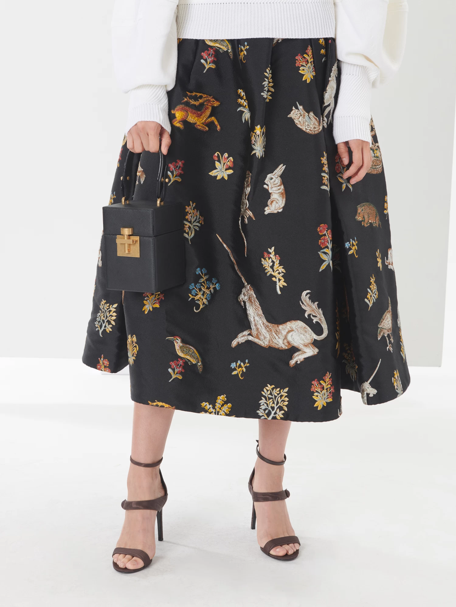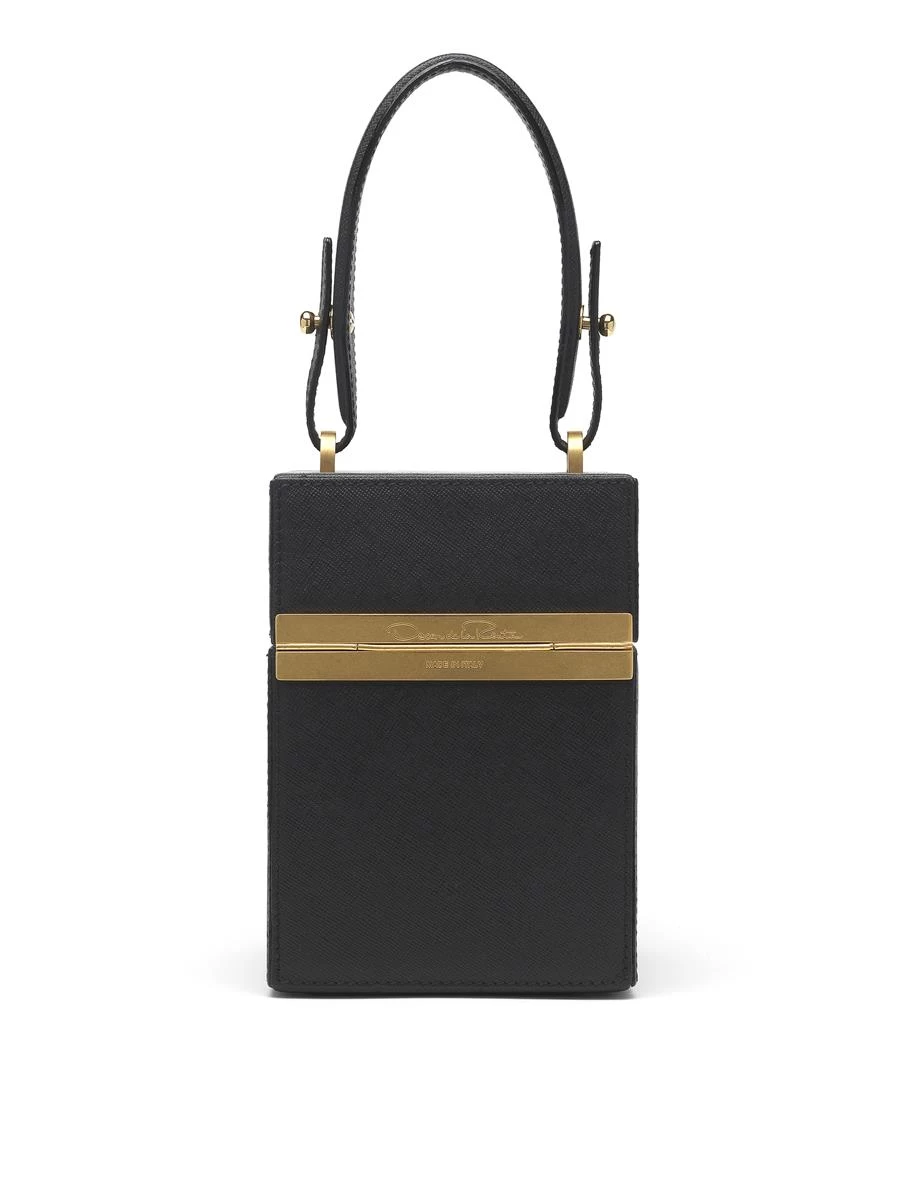 The Alibi bag is crafted from sleek black leather in a structured silhouette with gleaming gold hardware. Loop the strap around your wrist to carry it against day or night looks.