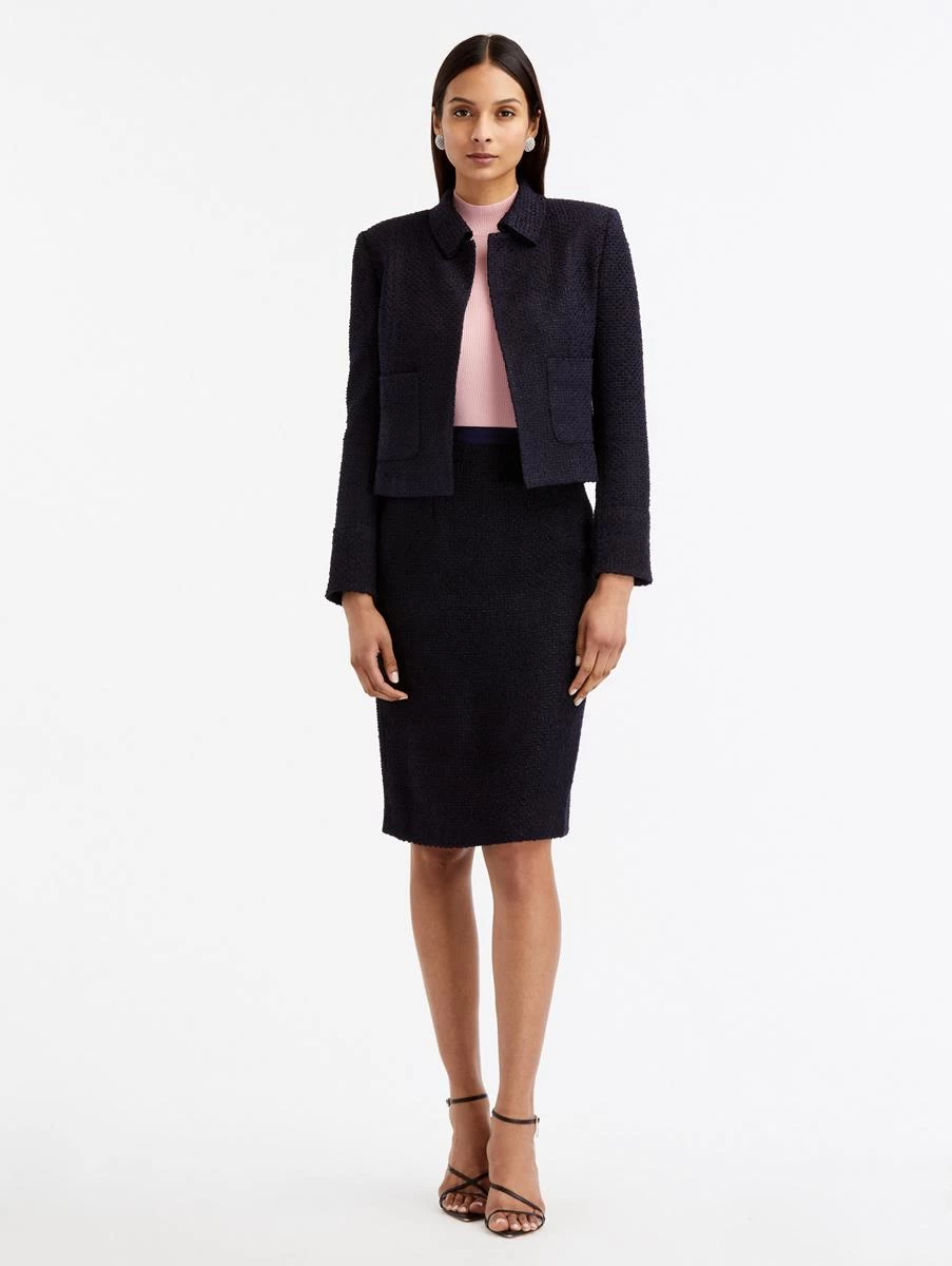 A modern option for workwear, this pencil skirt is crafted from textured boucle tweed and is defined by its classically tailored, fitted silhouette.