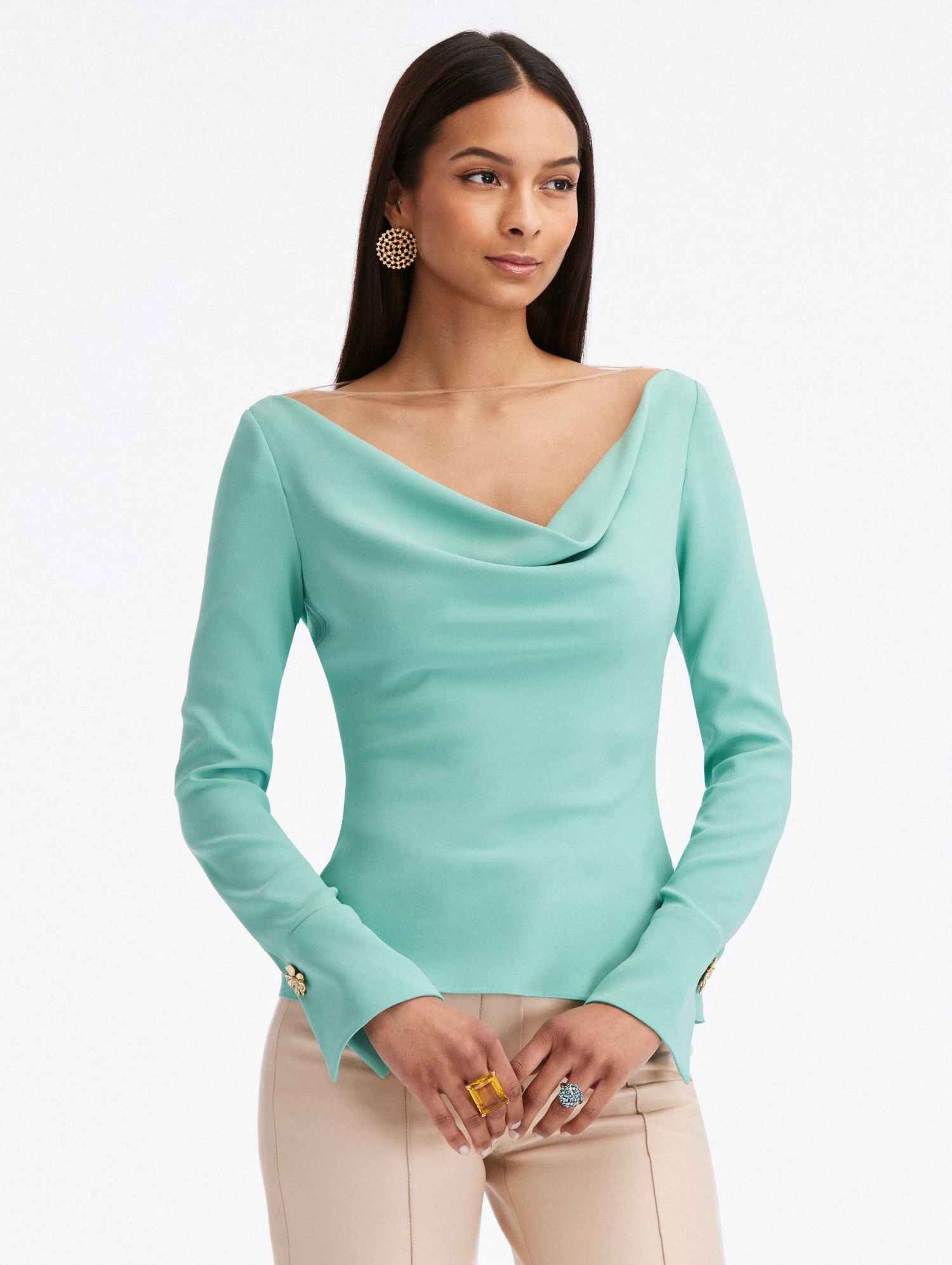 Be the first to review “Button Detail Cowl Neck Blouse” Cancel reply