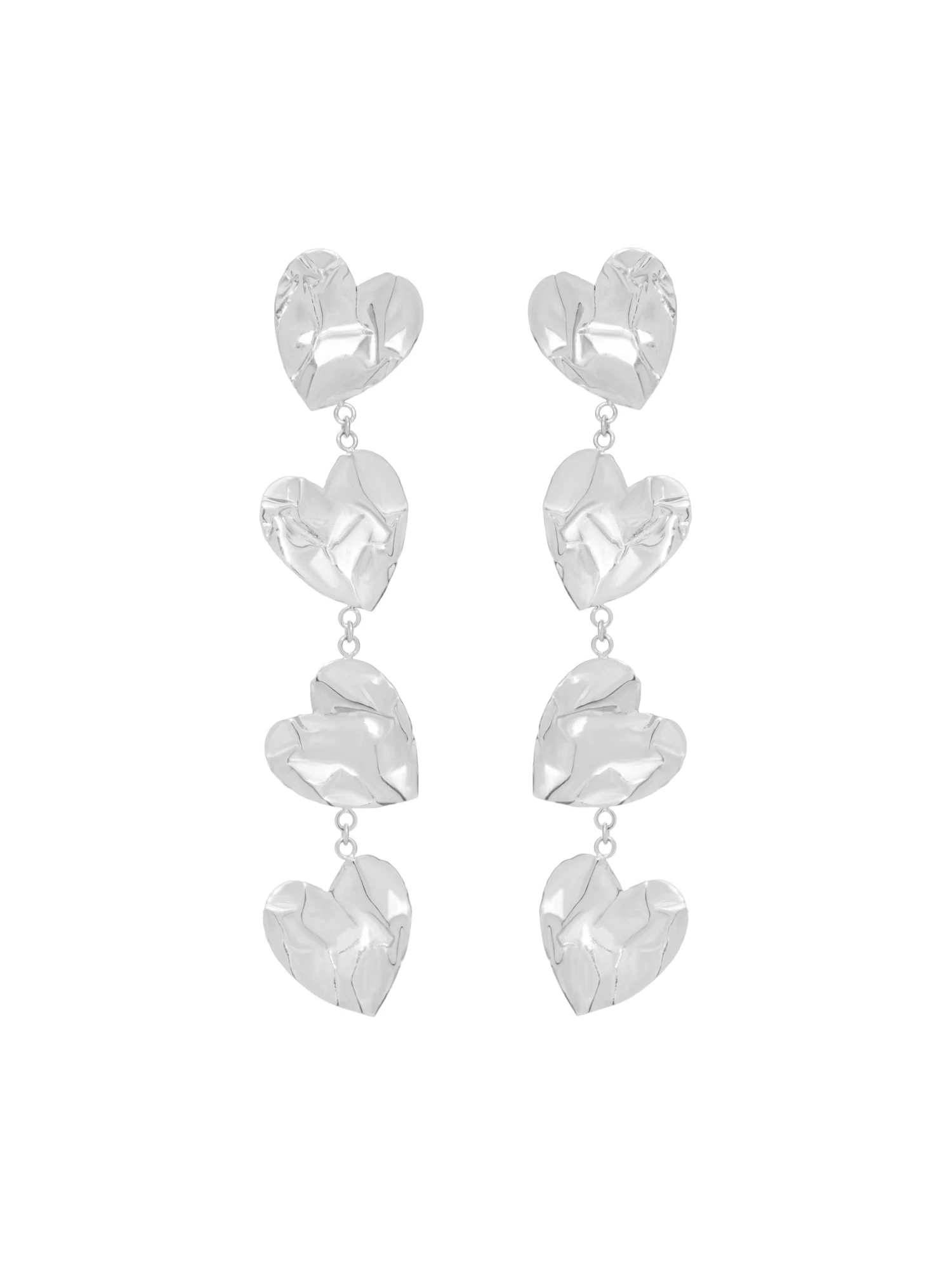 These heart drop earrings echo a delicate crushed construction and will add a touch of romance to even the simplest of looks. Pair with either the coordinating bracelet or necklace to maximize shine.