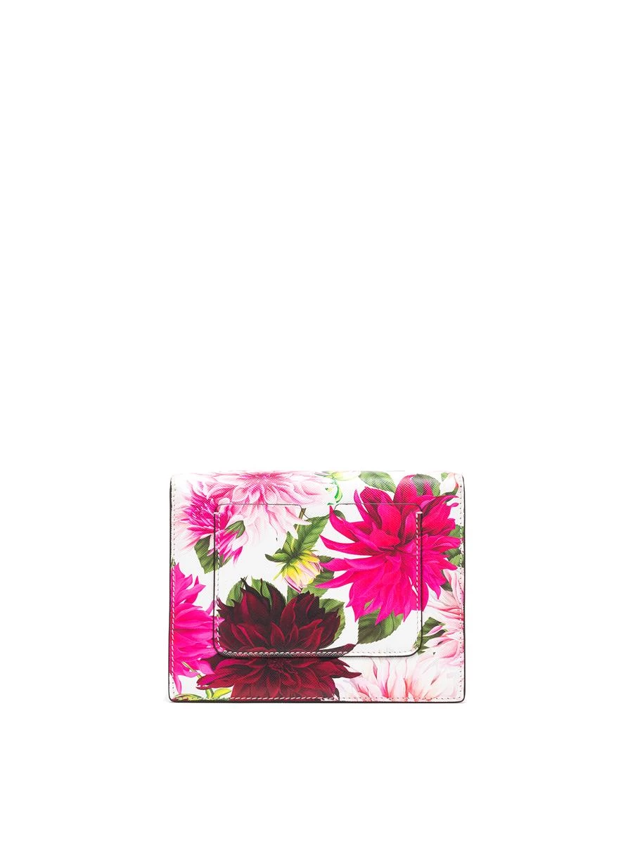 Our signature mini TRO bag belongs in every woman’s collection. Crafted from fine saffiano leather and printed with this season’s dahlia motif, this statement version is the perfect complement for day or night. Slip the optional gold-tone chain strap over your shoulder or convert to the resin chunky chain.