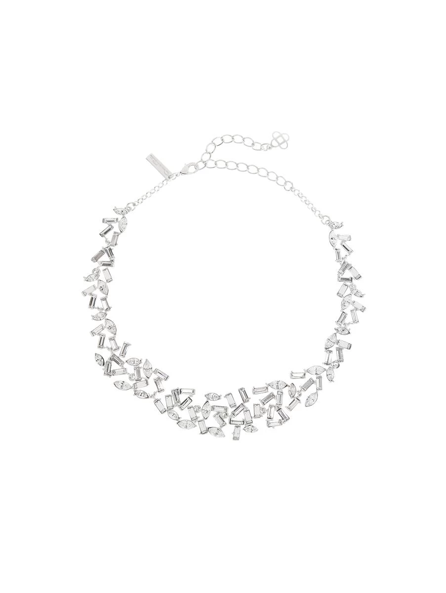 Channel Oscar de la Rental’s signature opulence with this shimmering necklace. Set with degrade multi-shaped glass crystals, this necklace is sure to catch the light from every angle. Pair with either the coordinating bracelet or earrings to maximize shine.