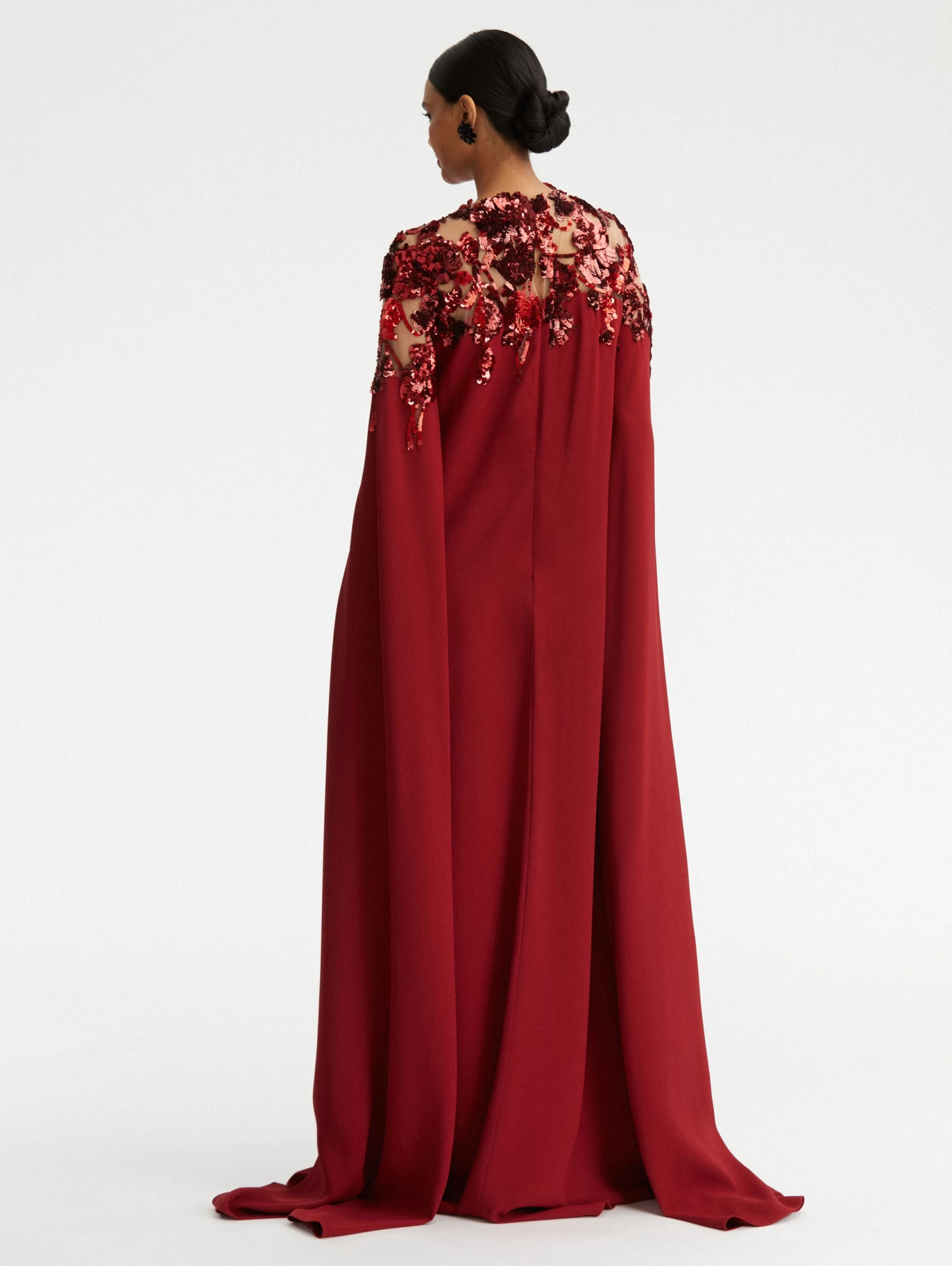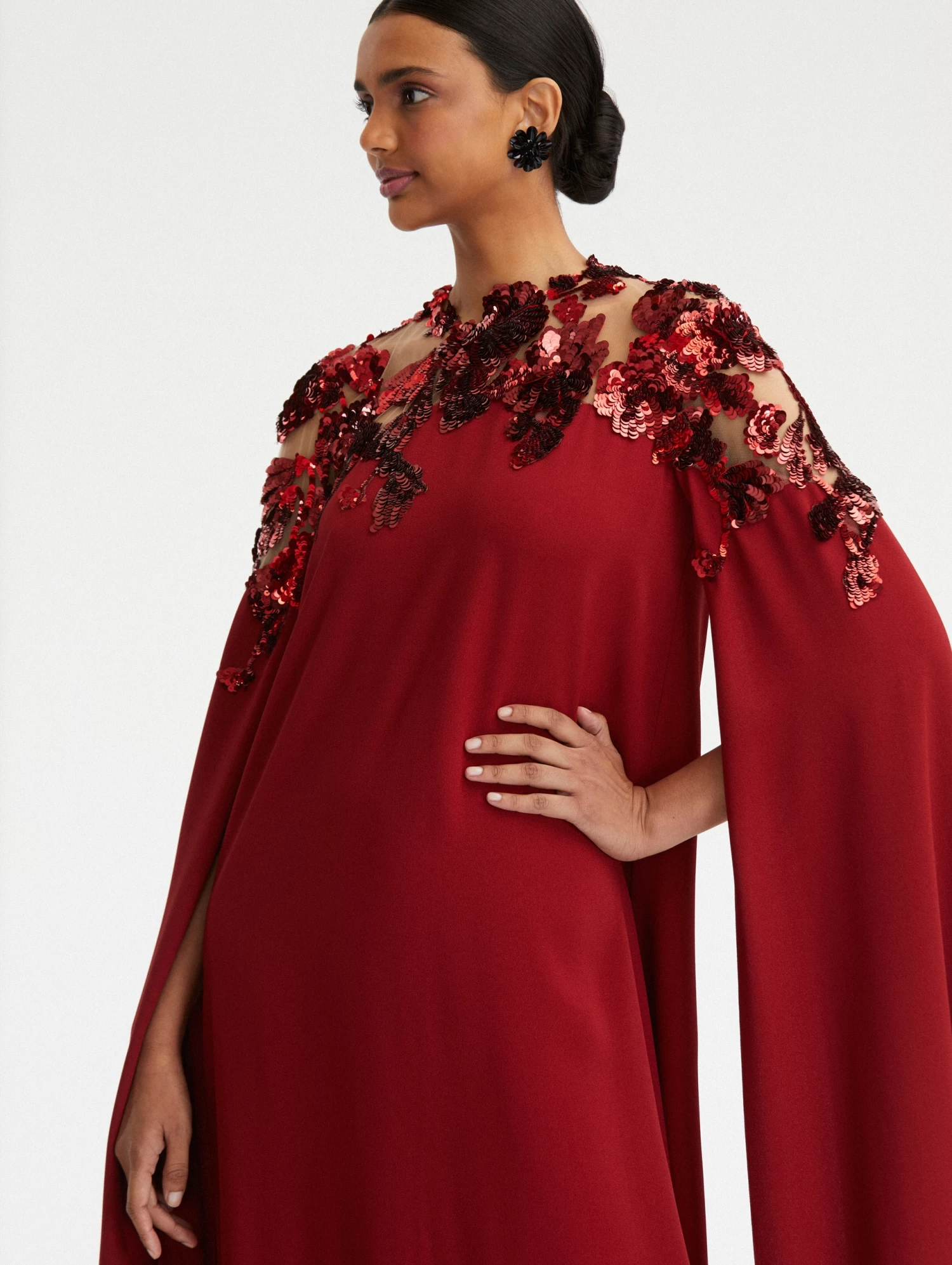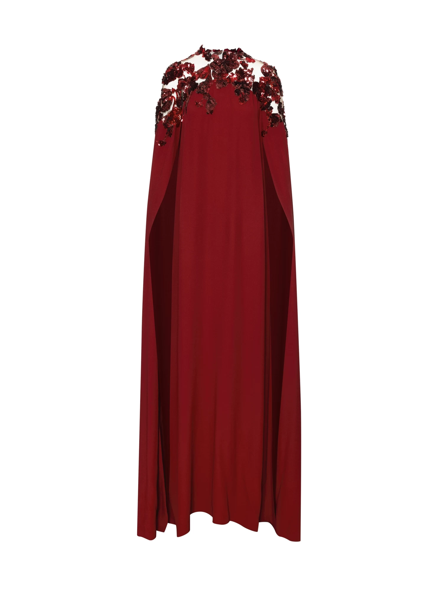 Long Sleeves / Floor-Sweeping Split Sleeves / Illusion Neckline / Relaxed Silhouette / Floor-Sweeping Hemline / Dry Clean