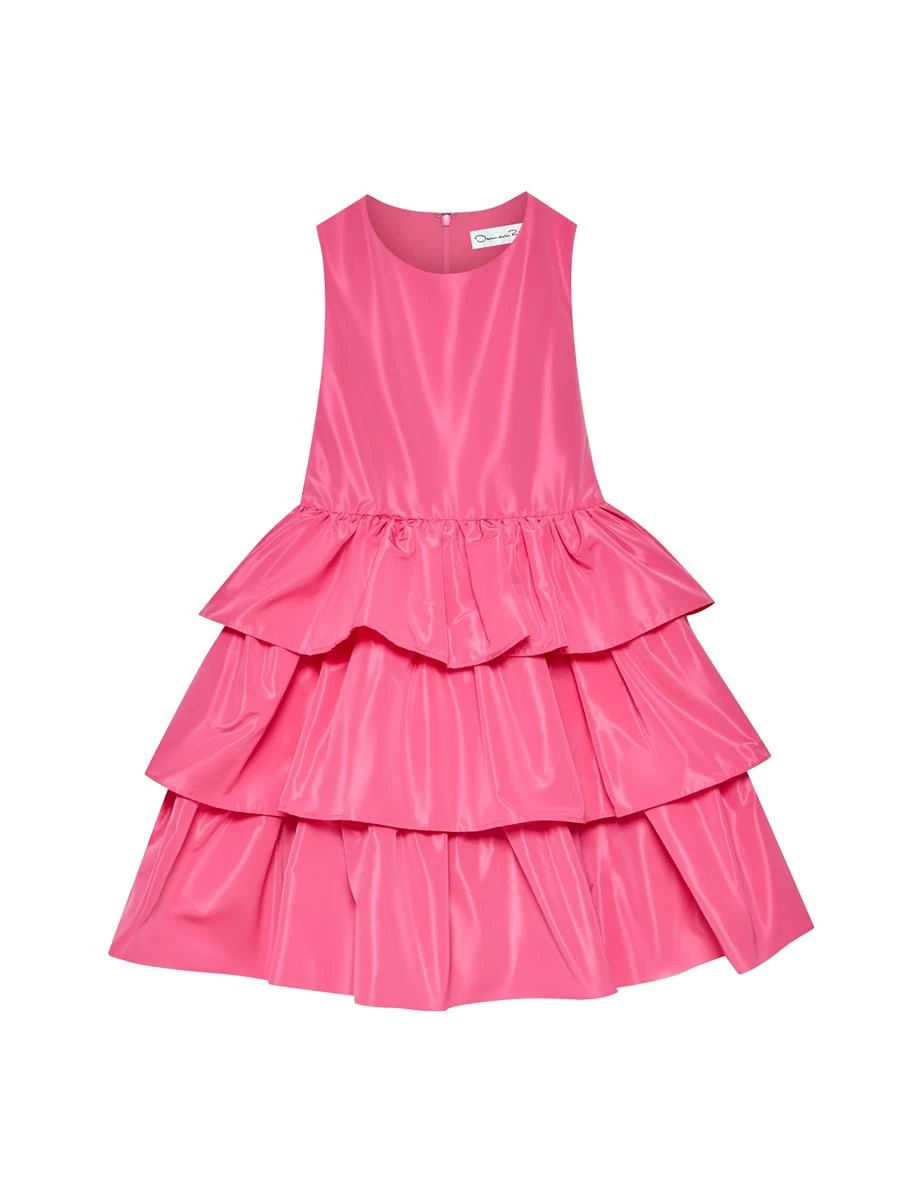 Brighten up her occasionwear with this party dress crafted from Oscar de la Renta’s signature silk taffeta with a darling tiered skirt.
