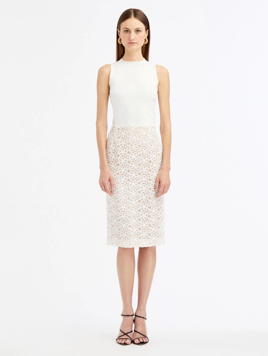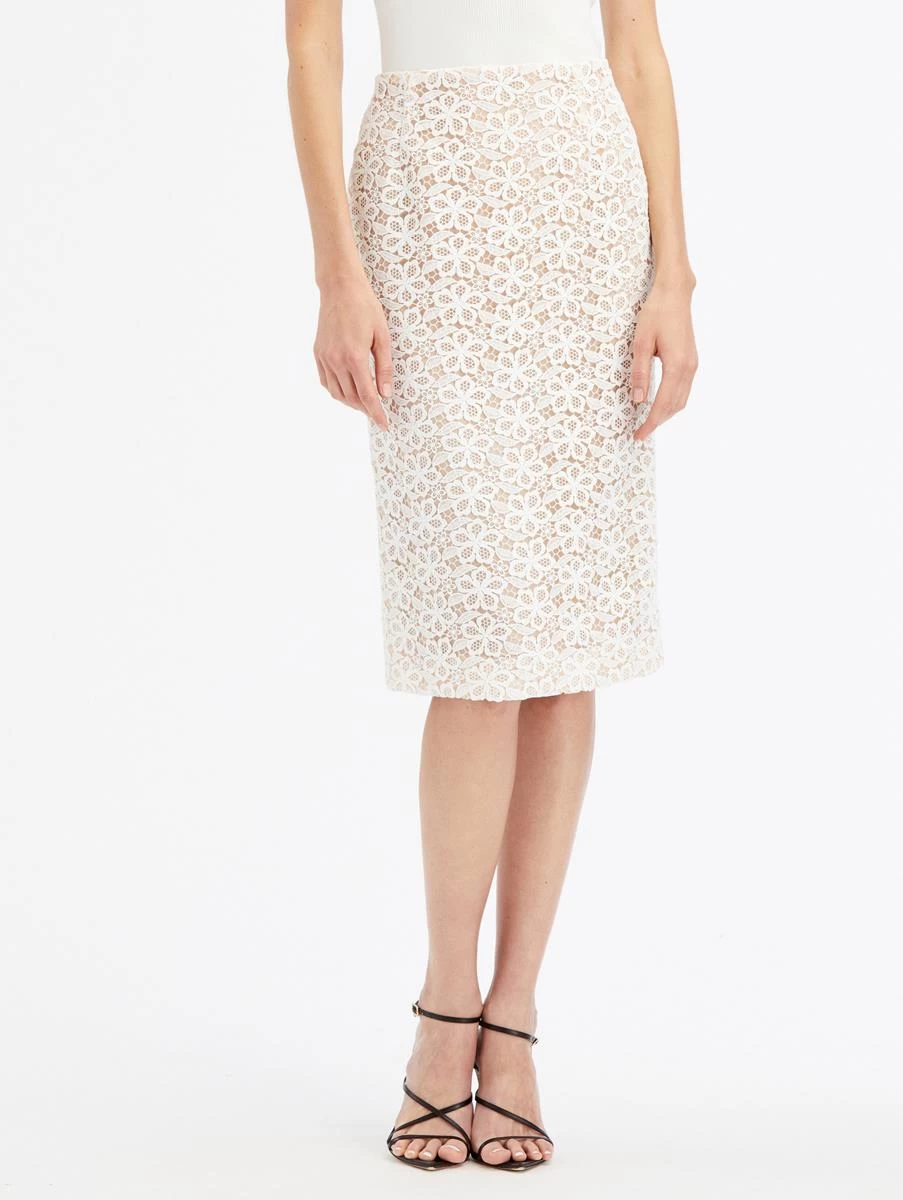 Both classic and modern, this pencil skirt is a sophisticated option for everyday dressing or any special occasion. Defined by all-over CONFIRM LACE detailing, this skirt features a high-waisted silhouette and back center slit.