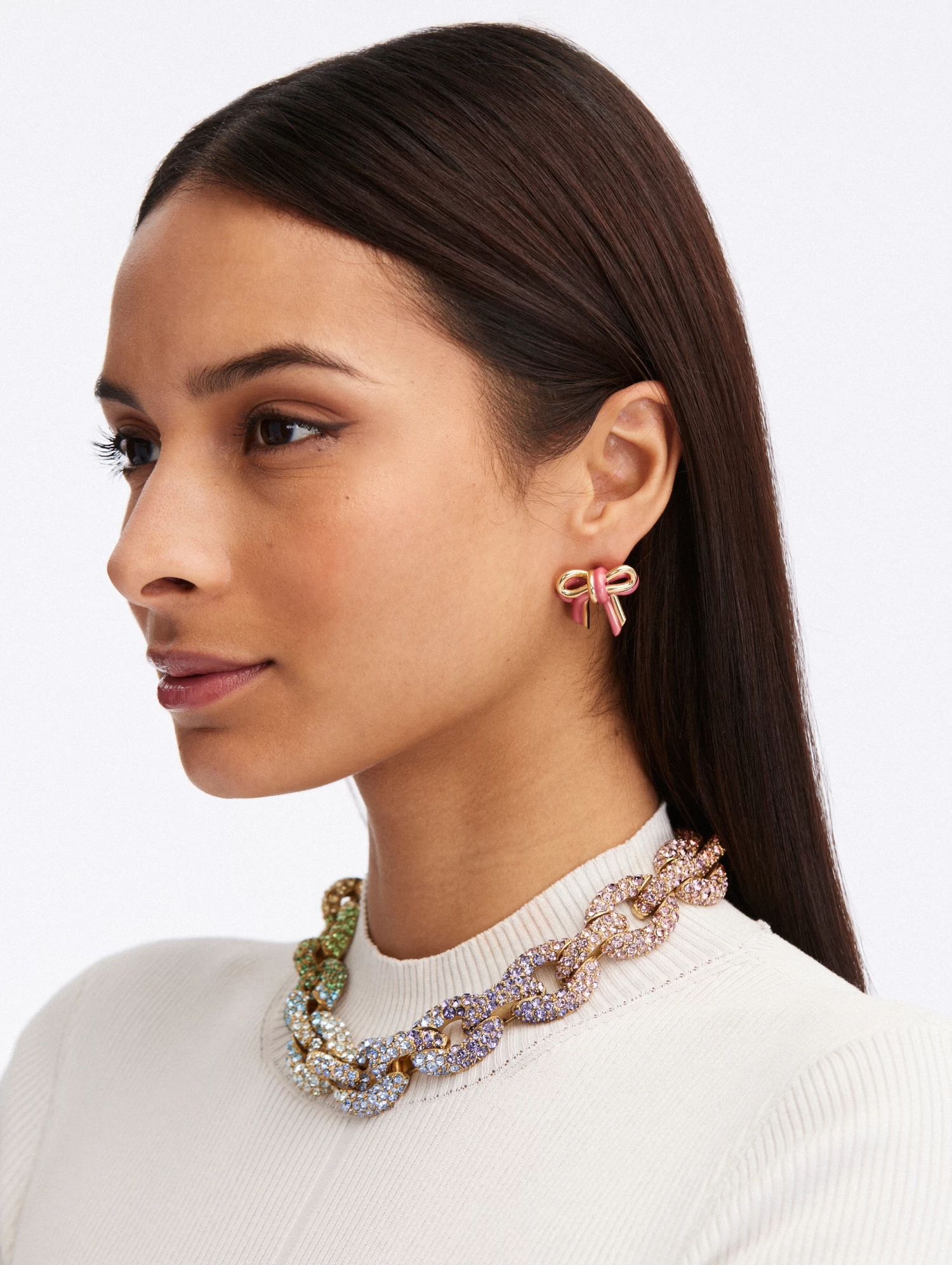 In a classic bow design, these two-tone studs tap into Oscar de la Renta’s signature feminine aesthetic.