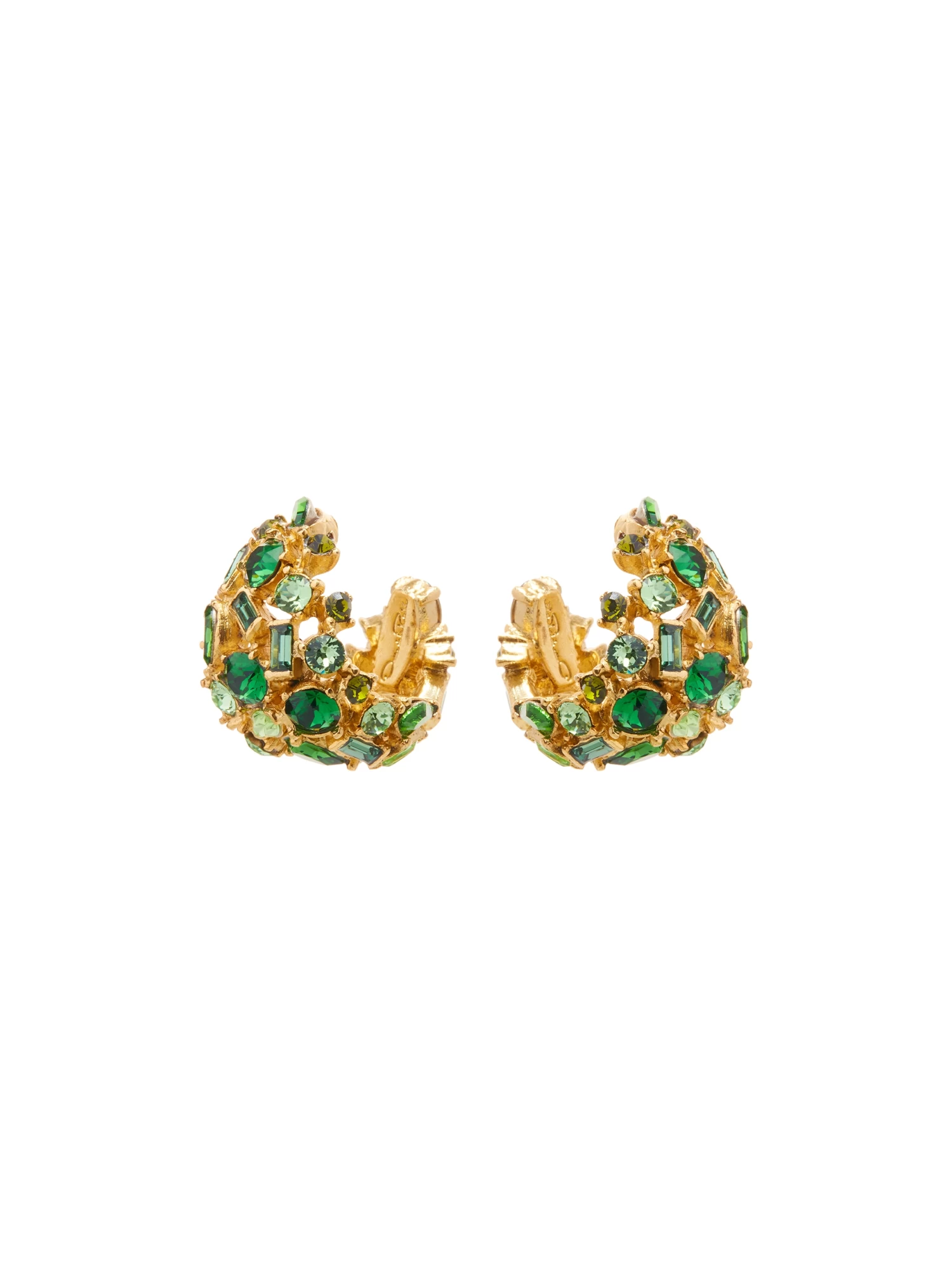 These small hoop earrings are covered with green glass crystals of various cuts for the most glamorous take on the must-have style.
