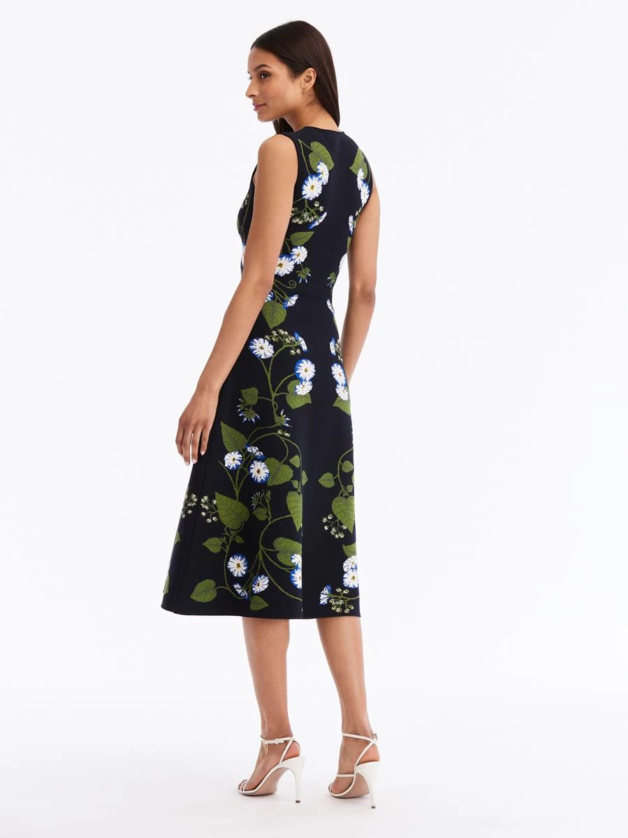 A house-favorite is reimagined season after season. This jacquard knit midi dress is defined by this season’s signature morning glory motif. This classic fit-and-flare style boasts a round neckline and softly flared skirt.