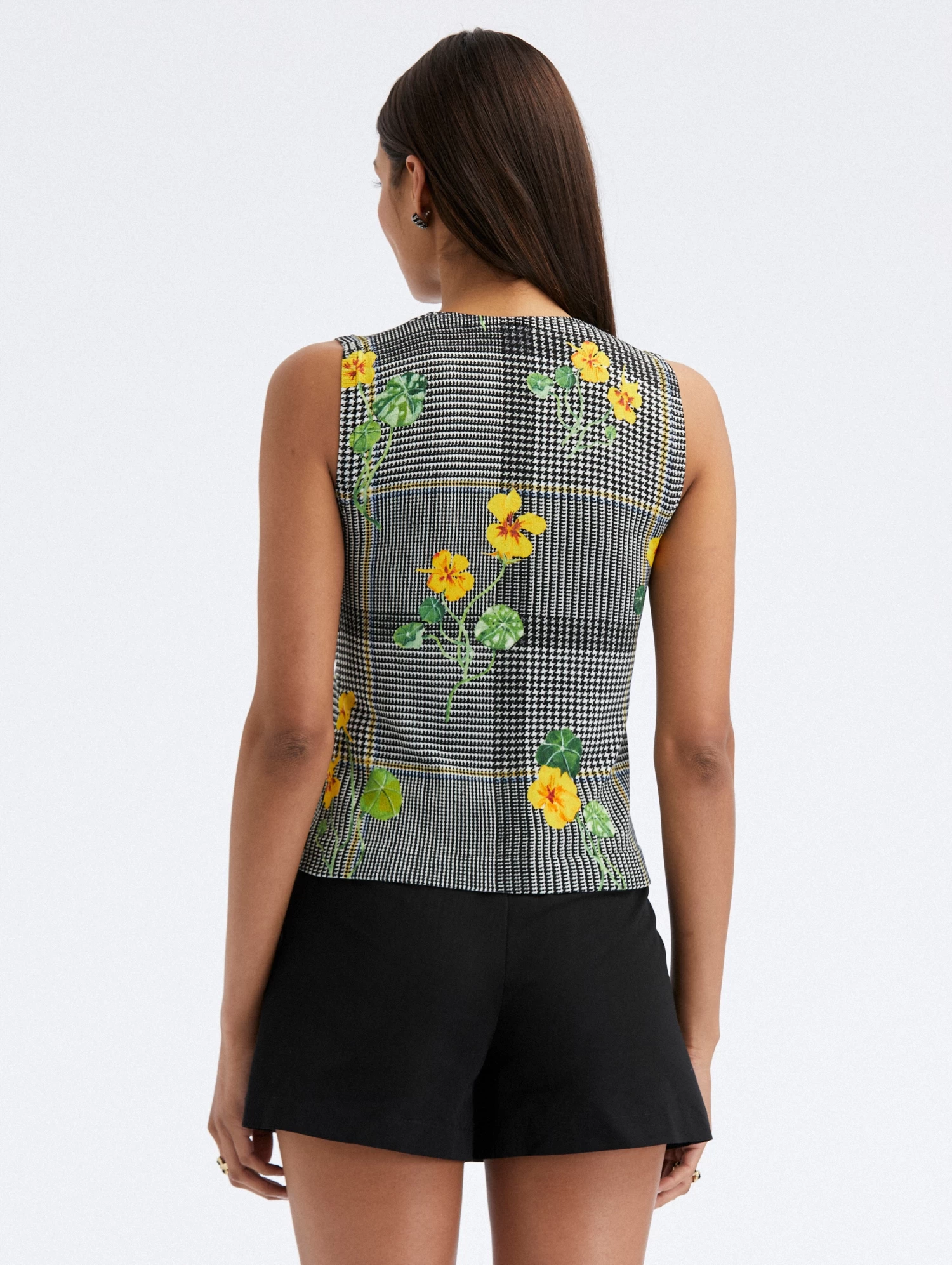 This classic ribbed-knit tank is defined by the Nasturtium Plaid print, a pillar of the Pre-Fall 2023 Collection. Cut in a form-fitting silhouette, this style features a crew neckline and a banded trim. Wear alone for a sleeveless statement or pair with its coordinating cardigan for optimal versatility.