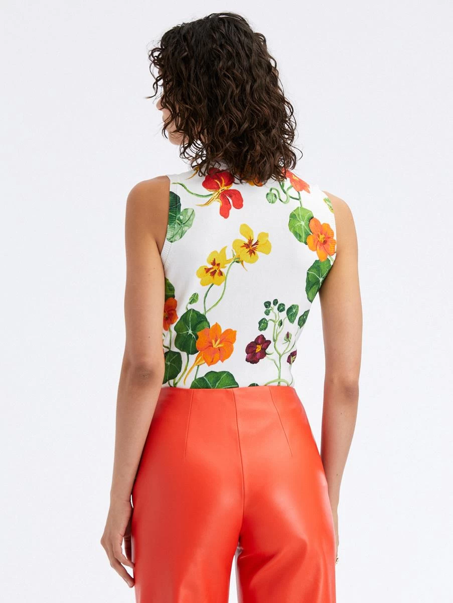 This classic ribbed-knit tank is defined by the Nasturtium motif, a pillar of the Pre-Fall 2023 Collection. Cut in a form-fitting silhouette, this style features a crew neckline and a banded trim. Wear alone for a sleeveless statement or pair with its coordinating cardigan for optimal versatility.