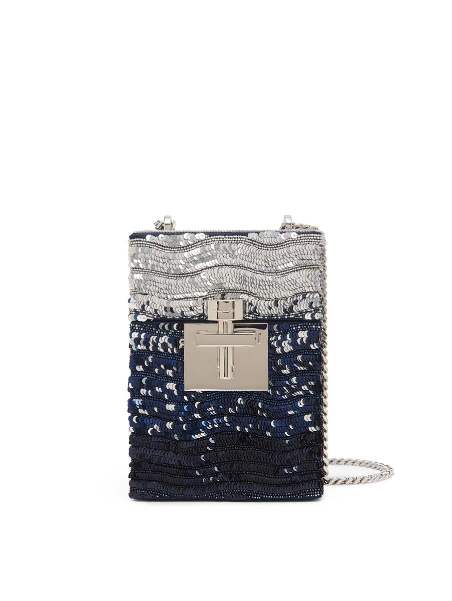 Intricate ombré sequin embroidery defines this handbag. The signature Alibi Top Handle handbag boasts a structured silhouette and features silver hardware. Slipt the optional chain link shoulder strap over your shoulder or convert to the top handle with daytime or evening looks.