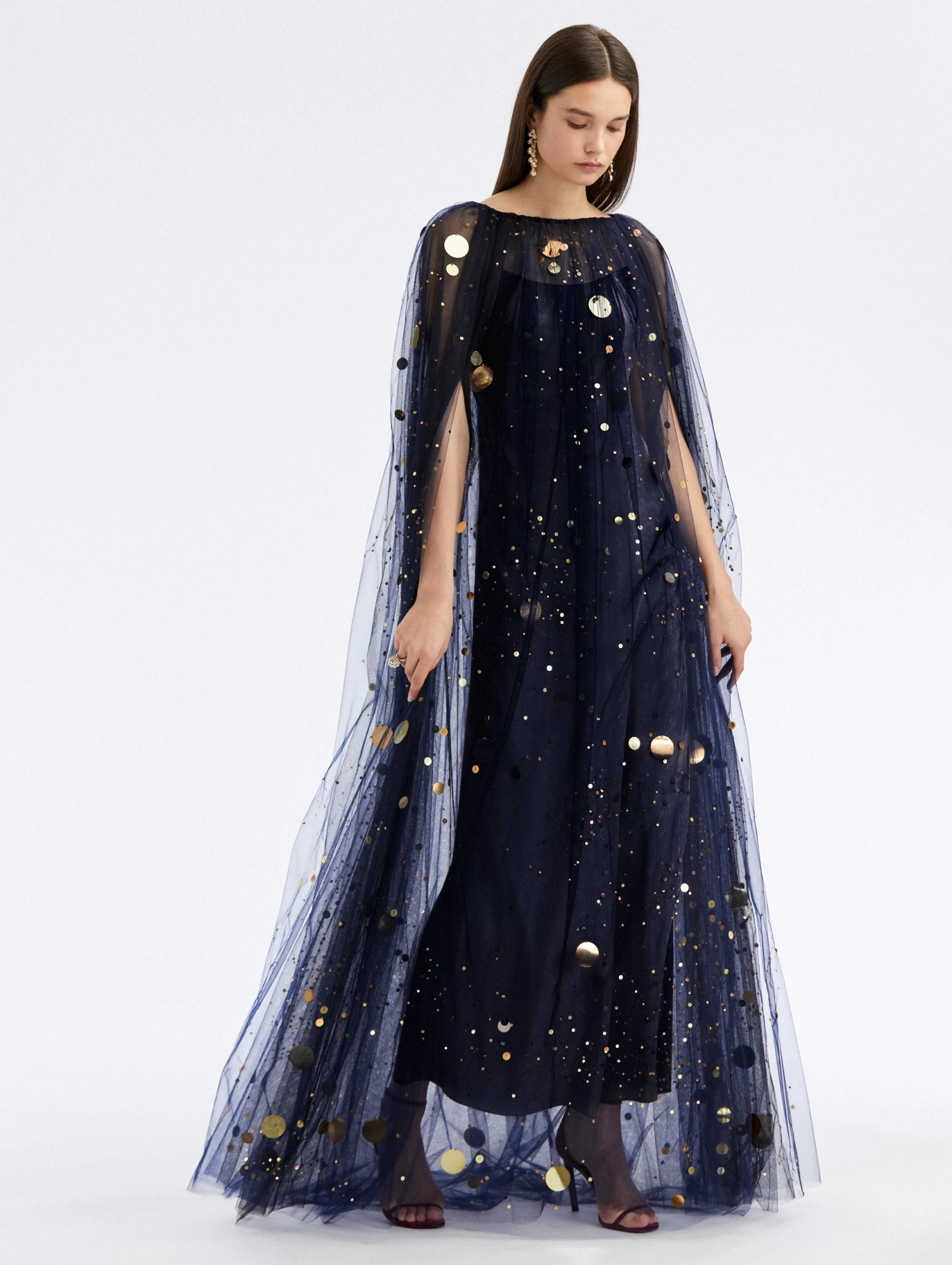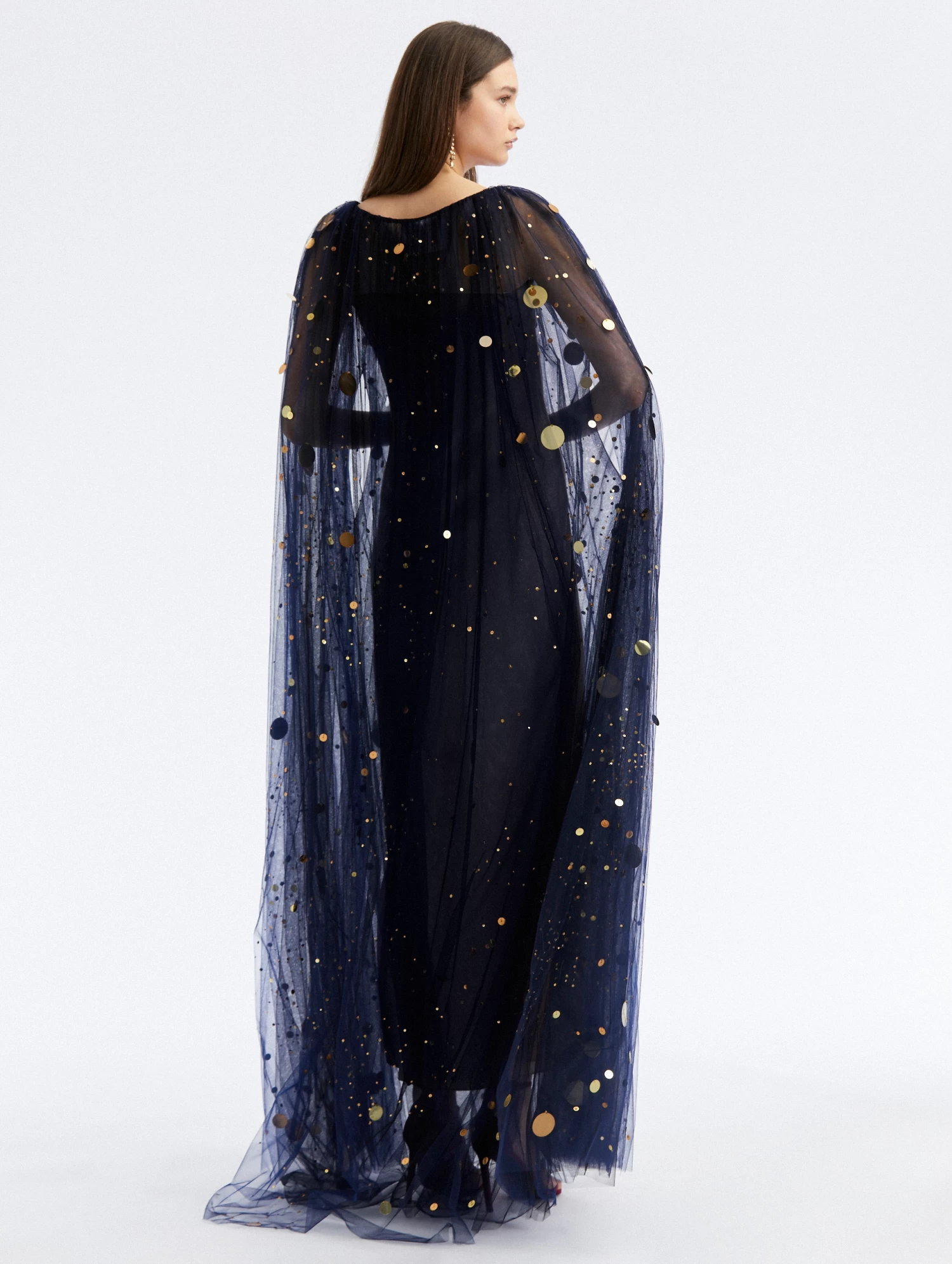 The luminescent firefly motif, a pillar of the collection, is adapted into a floor-sweeping caftan with sequin & bead embroidery – a truly extraordinary piece you will have for a lifetime.