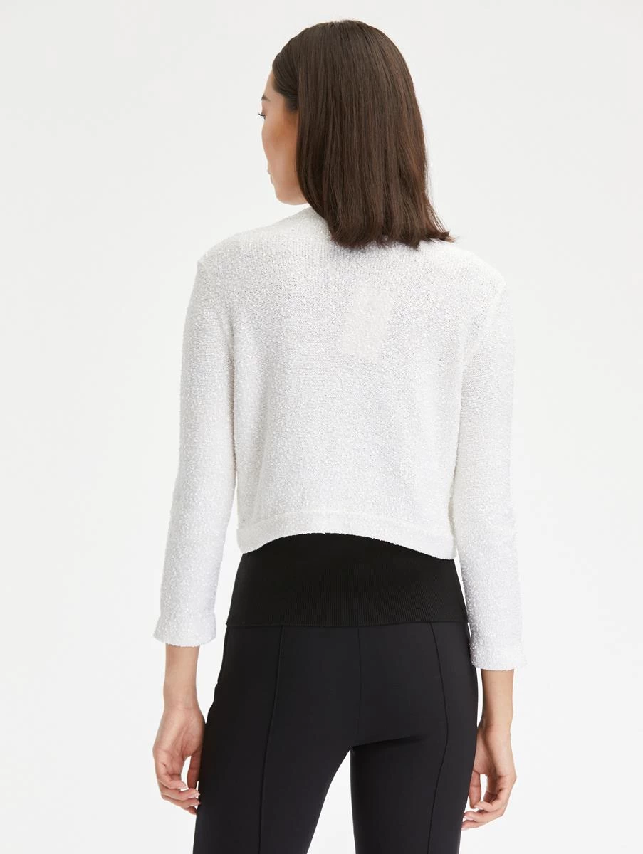 An essential layering piece in any woman’s wardrobe, this timeless bolero is knit from a luxurious cashmere-silk blend in a bright white. Coveted and collected, this overlayer pairs beautifully with blouses and dresses alike.