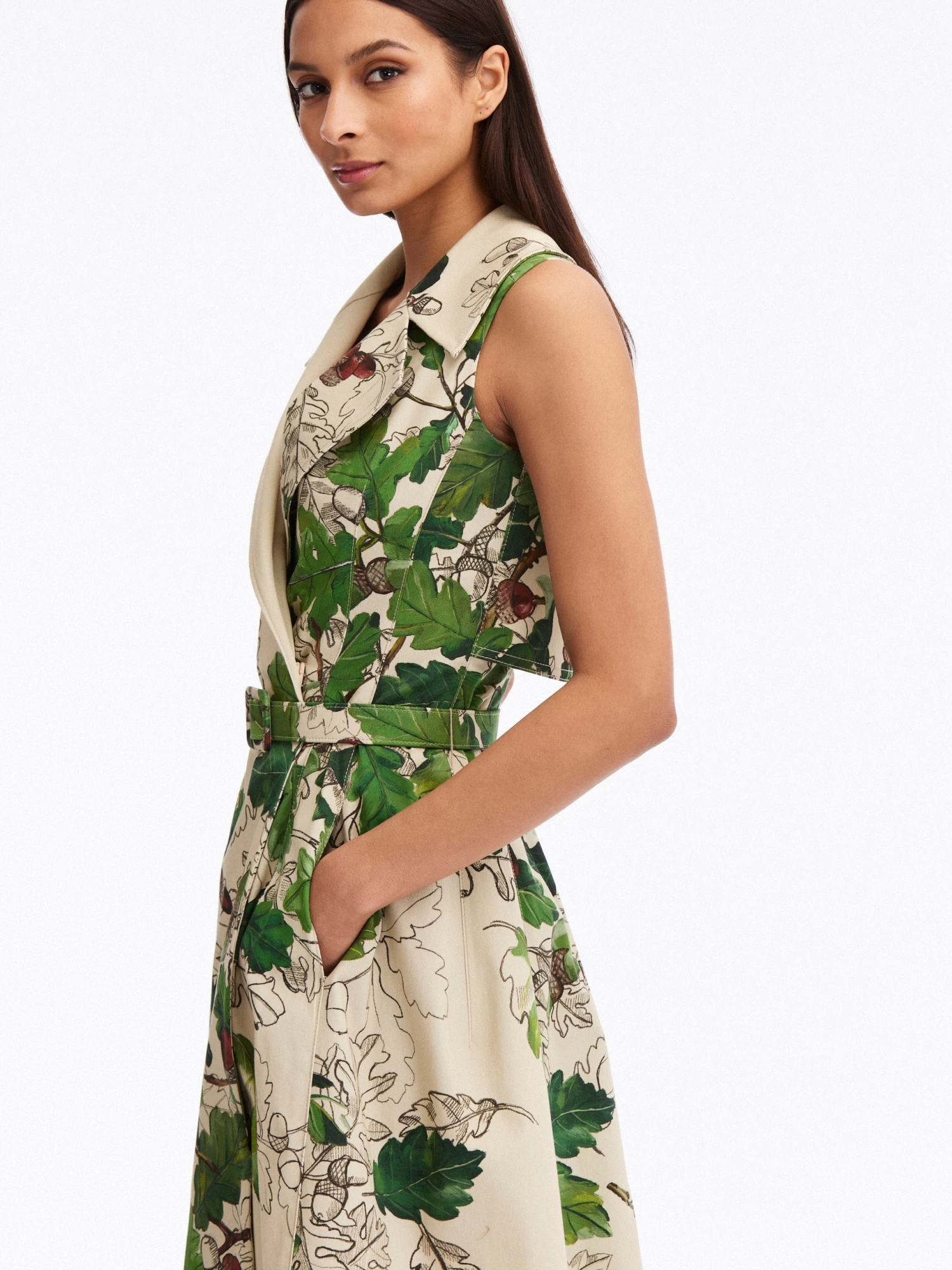 Be the first to review “Sleeveless Sketched Acorn Twill Wrap Dress” Cancel reply