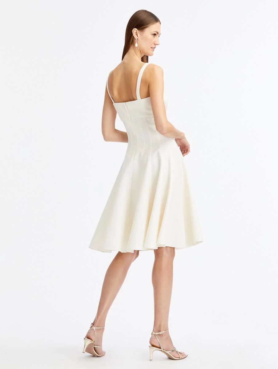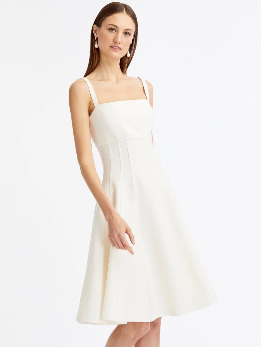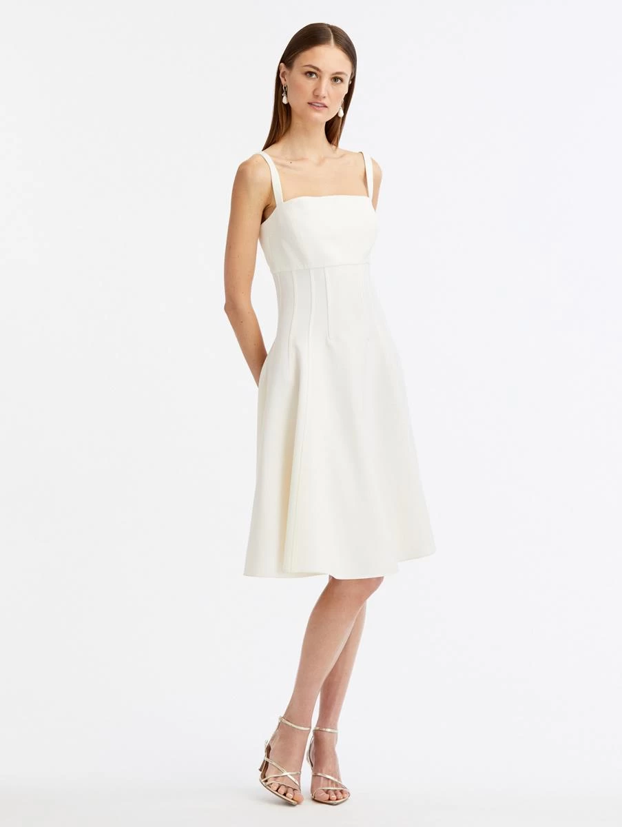 Flaunting a square neckline and A-line silhouette, this classic midi dress is crafted in a soft shade of ivory and features a seam detail bodice.