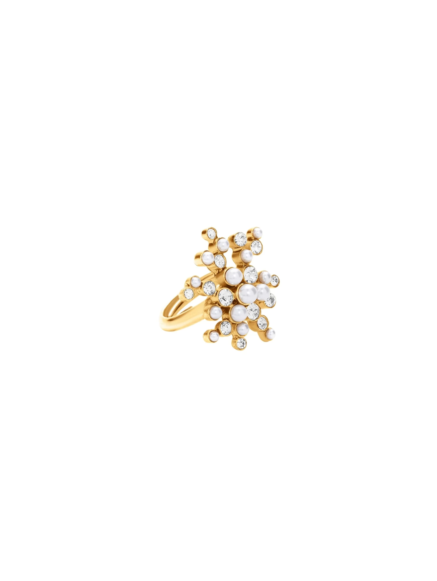 Shine bright with this turbillion ring set with glimmering glass crystals and accents of crystal pearl. Pair with the coordinating earrings for maximum shine.